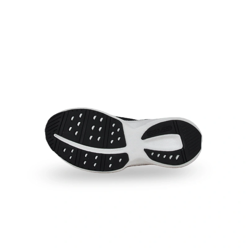 This is a pair of sports running shoes with a simple and textured design. The upper is mainly black, paired with a white thick sole, creating a classic and grand color contrast. The texture design of the upper combines breathability and fashion sense, and the silver brand logo on the side of the shoe adds recognition to the whole. The thick sole design provides a comfortable cushioning effect, and the black and white color scheme is versatile and durable, suitable for daily sports or casual wear, bringing consumers a comfortable and trendy wearing experience.