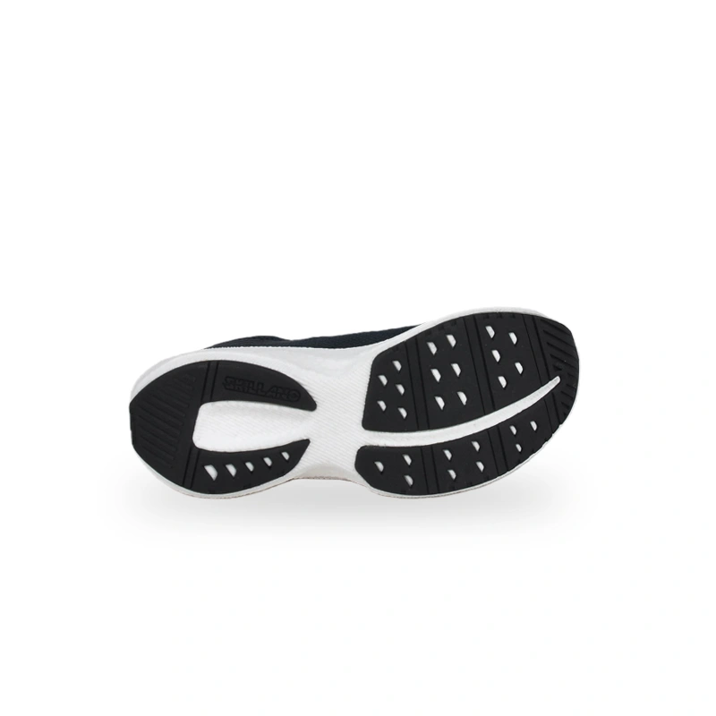 This is a pair of sports running shoes with a simple and textured design. The upper is mainly made of dark blue mesh, paired with a white thick sole, creating a fresh and grand color scheme. The breathable hole design of the mesh material ensures excellent breathability. The thick sole design provides a comfortable cushioning effect, and the combination of dark blue and white is classic and versatile, suitable for daily running or casual wear, bringing consumers a comfortable and fashionable wearing experience.