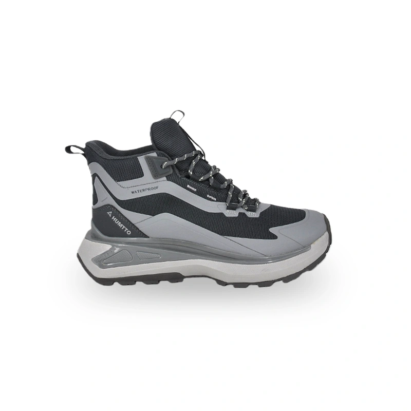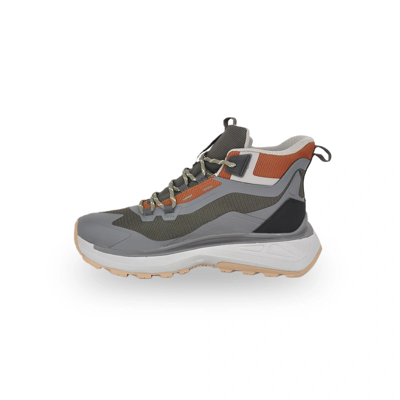 This is a pair of high-top outdoor hiking boots that combines protection and fashion. The upper features a gray-brown color scheme, and the high-top design enhances ankle support and protection. Suitable for complex outdoor environments. The sole pattern design ensures grip on rugged terrains. The overall style is suitable for mountaineering, hiking and other outdoor scenarios, providing a comfortable and professional wearing experience for outdoor enthusiasts, and the color scheme also makes it more textured in outdoor equipment.
