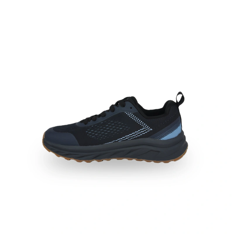 This is a pair of outdoor sports shoes that combines functionality and fashion. The upper is mainly dark gray, paired with blue decorative lines and a brown sole. The color matching is calm and has an outdoor style. The mesh material ensures good breathability, and the "NOTE" logo and detailed design on the side of the shoe highlight the brand and outdoor attributes. The thick sole design not only provides good cushioning support but also enhances the passability in complex terrains. It is suitable for outdoor hiking, mountaineering and other scenarios, bringing a comfortable and professional wearing experience to outdoor enthusiasts.