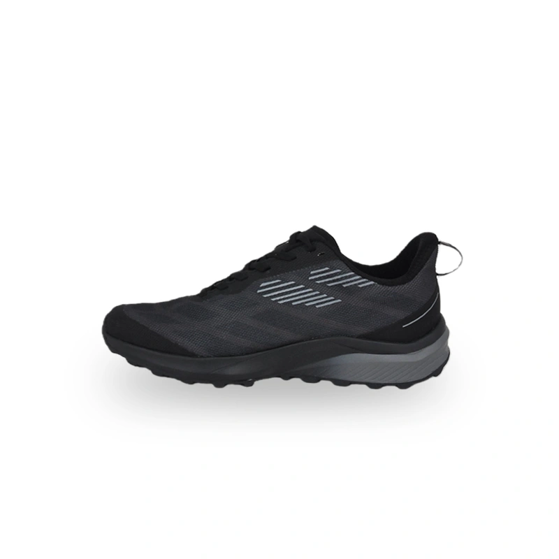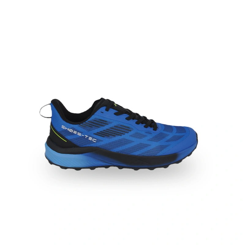 This is a pair of outdoor sports shoes with a calm and technological style. The upper is mainly black, paired with gray decorative lines and a sole. The "SHOES-TEC" logo on the side of the shoe highlights the brand attribute. The mesh material ensures good breathability, and the 纹路 (pattern) design of the sole enhances the grip in complex terrains. The overall design combines functionality and fashion, suitable for outdoor hiking, off-road and other scenarios, providing a comfortable and professional wearing experience for outdoor enthusiasts.